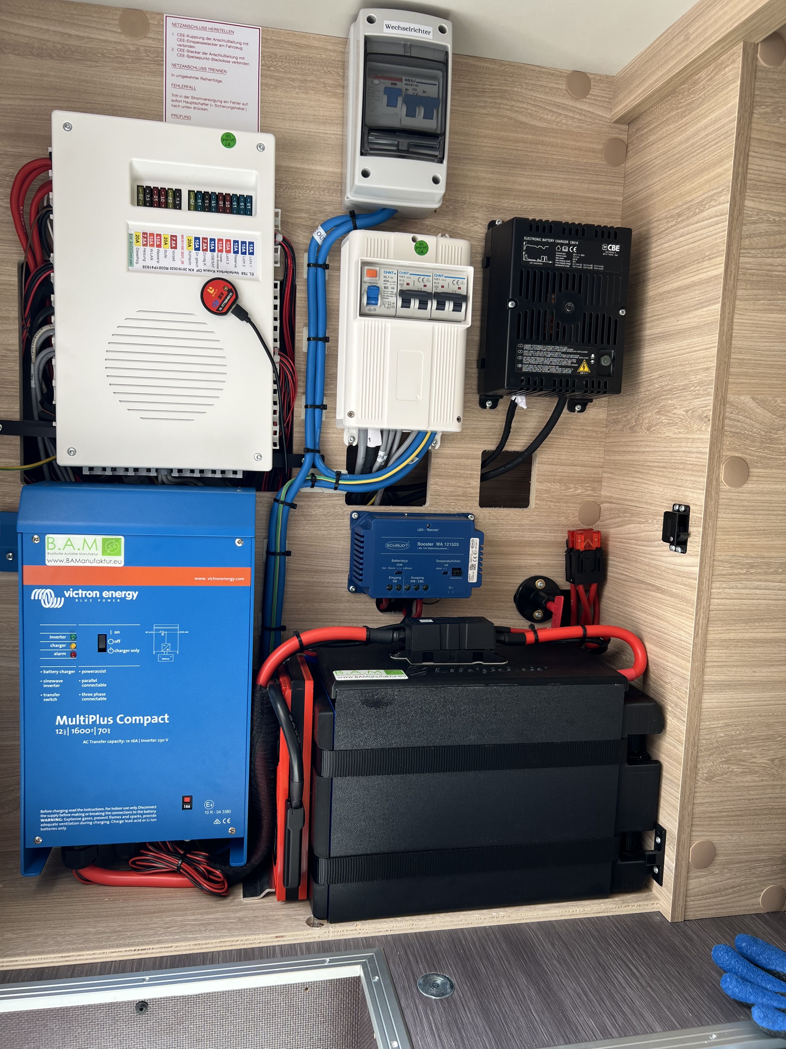 Es ist wirklich selten das am in aktuellen Fahrzeugen so viel Platz zur Verfügung hat 😉 280AH LiFePo mit 1,6KW MultiPlus von Victron eine traumhafte Kombi!